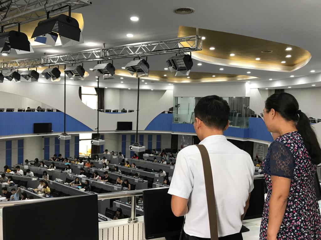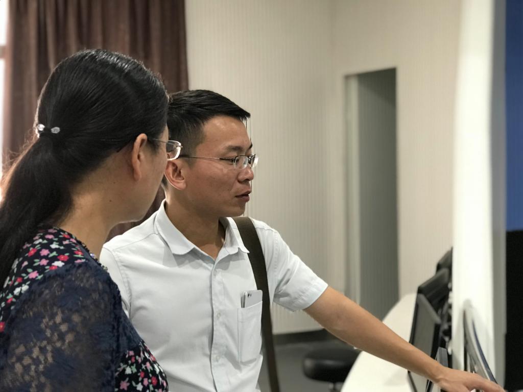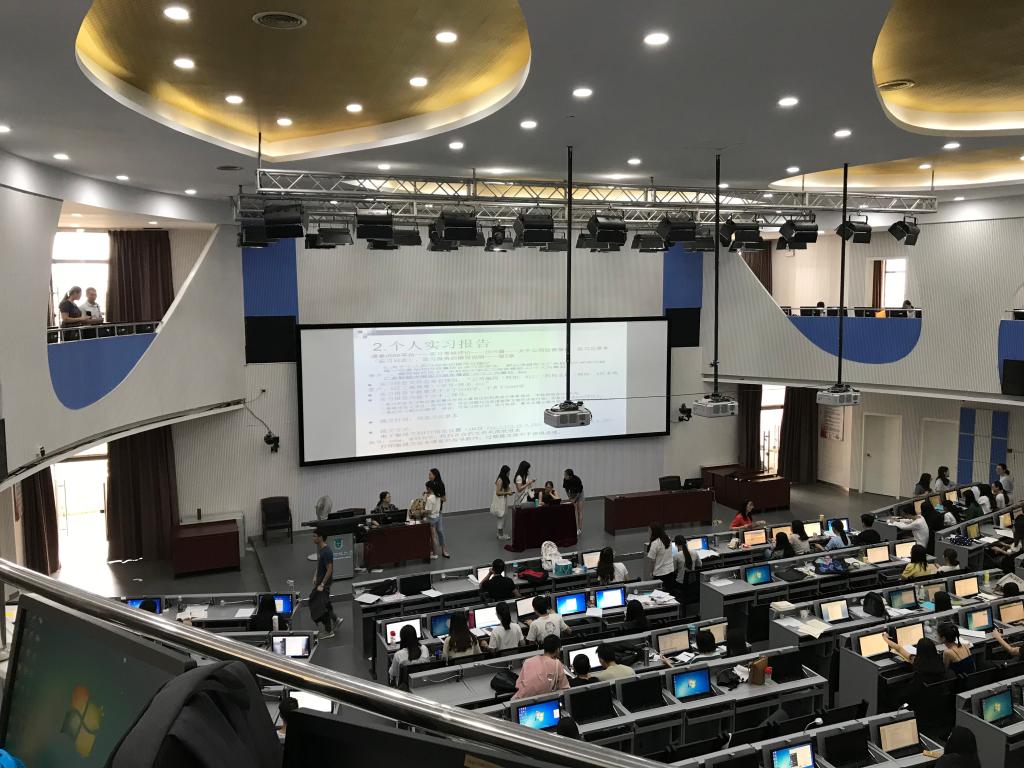 接着,在实习指导部副总指导宾瑜、方莉君带领下,前往实验室参观了学生仿真实习现场。深入了解了学生的实习效果和实习成果。双方还就实践教学的体系设计、如何进行需求分析、如何达到预期目标以及进一步交流学习的合作意向等方面进行了广泛和深入讨论。