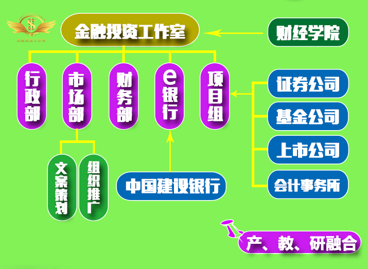 金融投资工作室分为若干个团队,接受企业(金融类)的金融产品营销任务,例如证券股票、期货开户、客户关系维护、基金产品、资产管理产品理财产品的销售等。