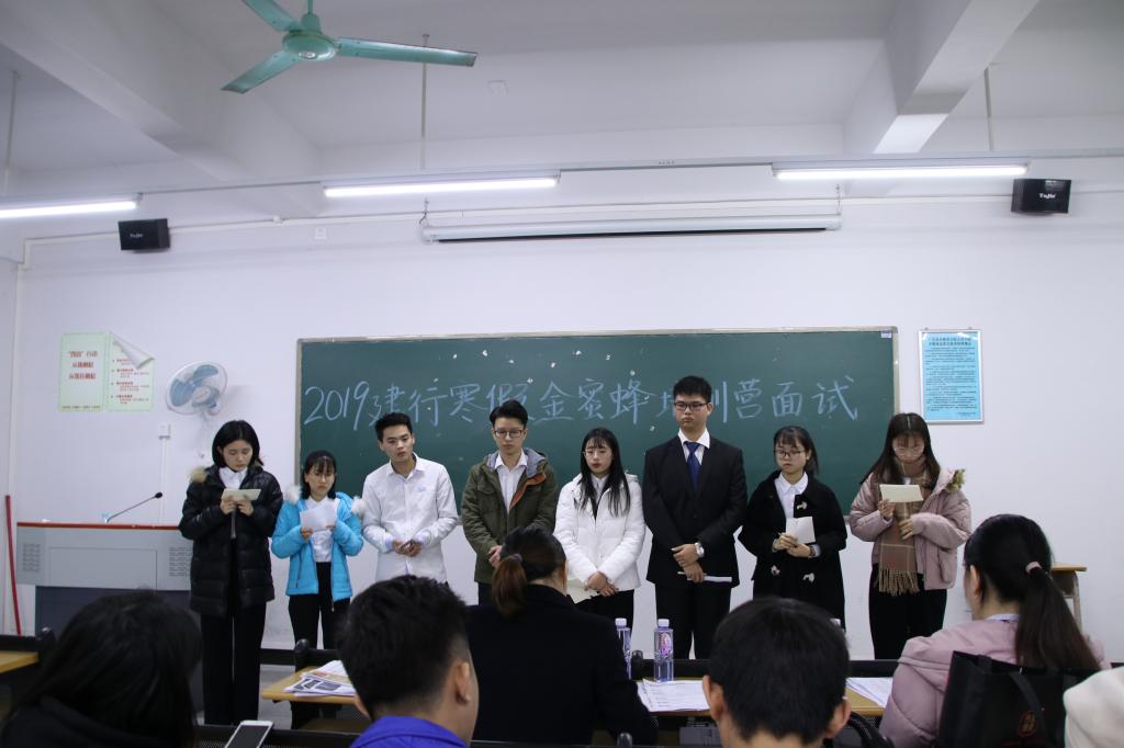 换届会议结束后,我校2019年寒假金蜜蜂培训营学员选拔面试活动在12栋802教室举行。经过第一轮的网上筛选,40名同学被分为5组进入到了本次第二轮无领导小组面试。同学们按顺序进行自我介绍,所在小组在规定时间内,讨论面试官所给的问题并提出解决方案。面试官结合同学们的面试过程中的综合表现,进行严格筛选。经过面试小组打分评比,最终张汉豪、陈树洁等15名学生顺利通过2019年建行寒假金蜜蜂培训营选拔。至此,校园e银行换届大会暨2019年建行寒假金蜜蜂培训营选拔已圆满结束。相信在新行长和新团队的带领下,我校校园e银行在发展路上会取得新的成绩与突破。