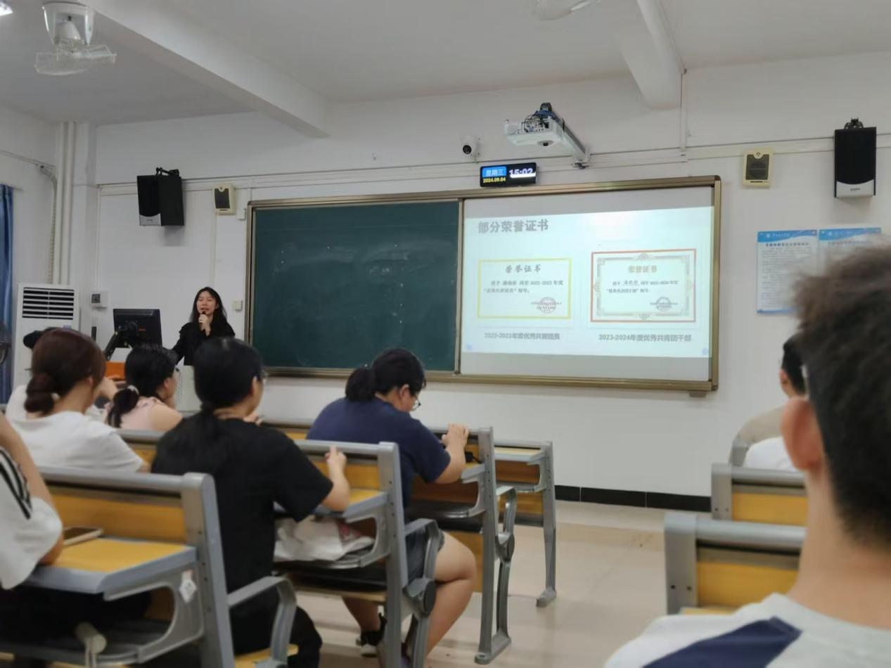 接下来,潘晓彤分享了作为团支书兼班长的工作经验,鼓励大家积极参加科云杯、互联网+、一带一路暨金砖国家技能发展与技术创新大赛等学科竞赛,不断提升综合素质,并希望学弟学妹们尽早做好职业规划,明确目标,实现梦想。