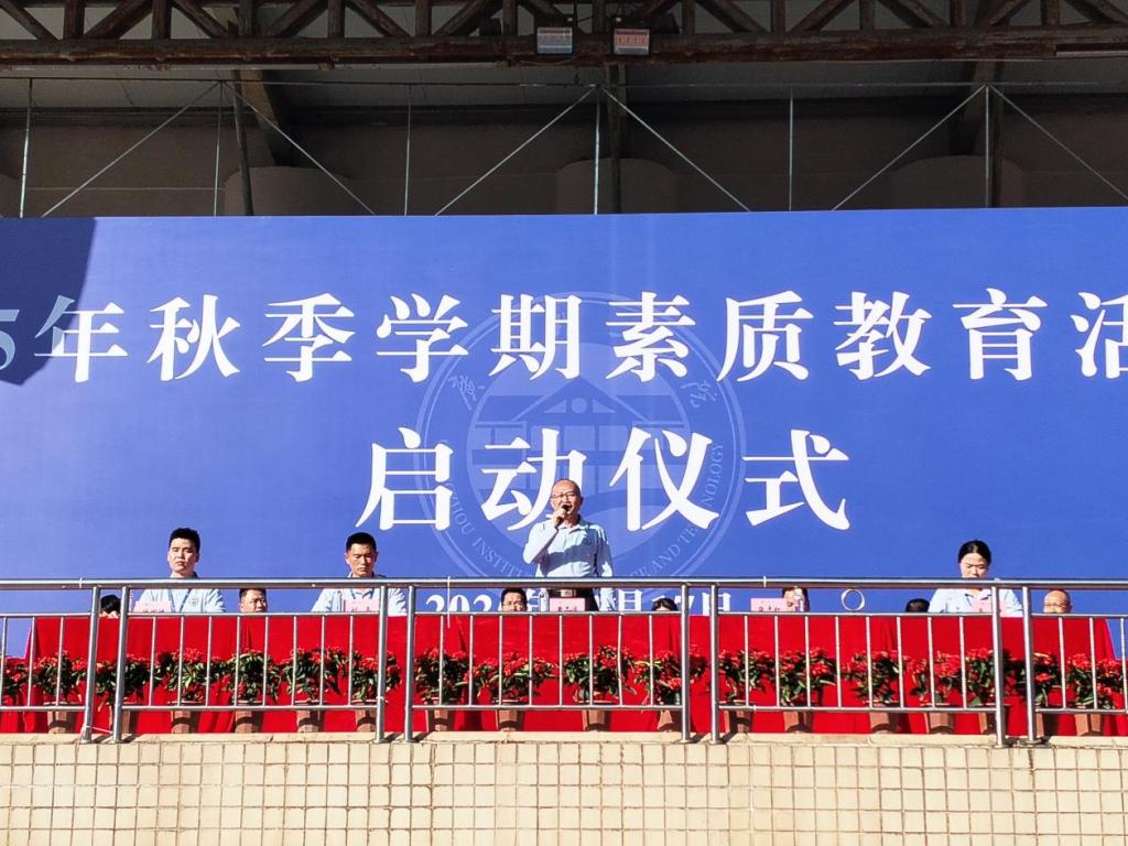 (通讯员:温凯晴,范晓殷)2025年11月17日上午8:00,广州理工学院2025年秋季学期素质教育周启动仪式在白云校区大运动场举行。本次启动仪式出席嘉宾有校党委书记黄圣诚、副校长张志红、各机关职能部门、各二级学院院长及党总支书记和23级全体师生共同见证这一活动的开启。