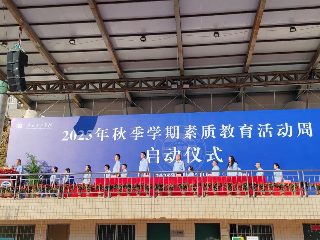 大会第一项议程,全体起立,奏唱国歌。在庄严的国歌声中,广州理工学院2025年秋季学期素质教育周启动仪式开幕。