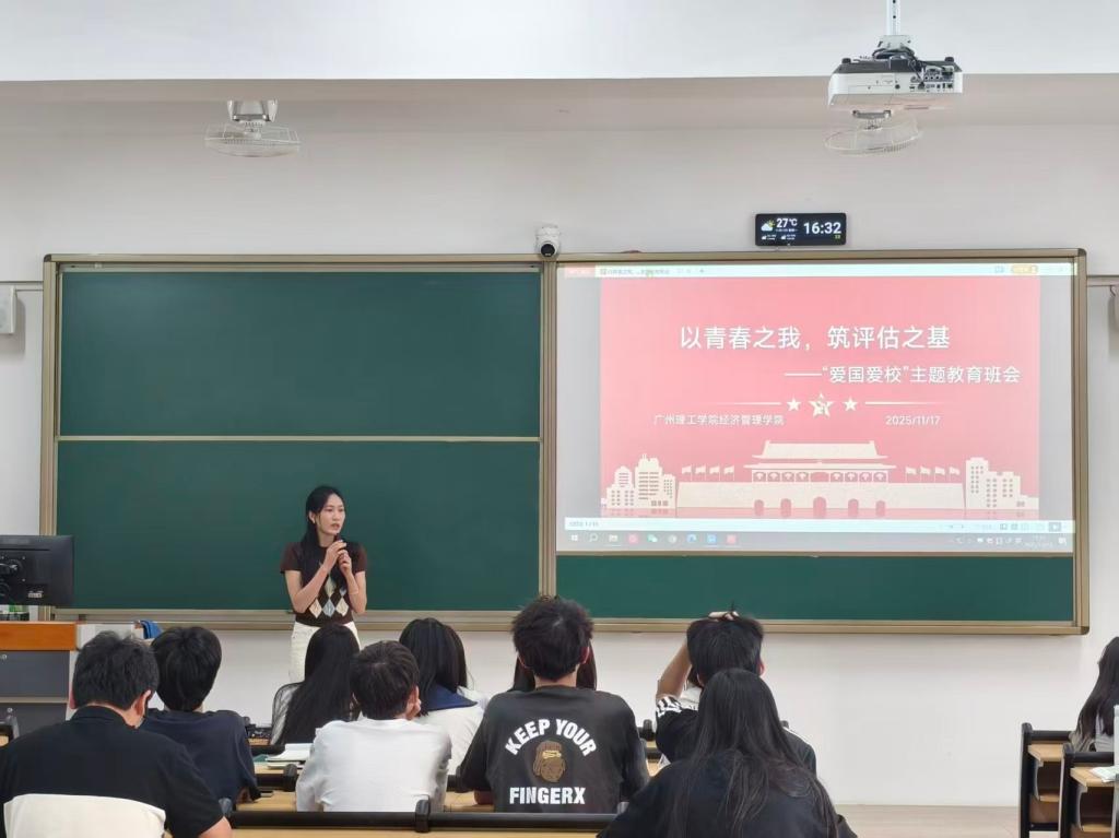 为厚植青年学子家国情怀,强化责任担当意识,引导广大学生将个人成长轨迹与祖国发展进程、学校建设蓝图紧密相连,2025年11月17日16:30,suncitygroup太阳集团于1栋教学楼有序组织开展“以青春之我,筑评估之基”爱国爱校主题班会。本次主题班会由各班班导师精心主持,suncitygroup太阳集团2025级全体学生全员参会,共同开启一场关于热爱与担当的思想共鸣之旅。