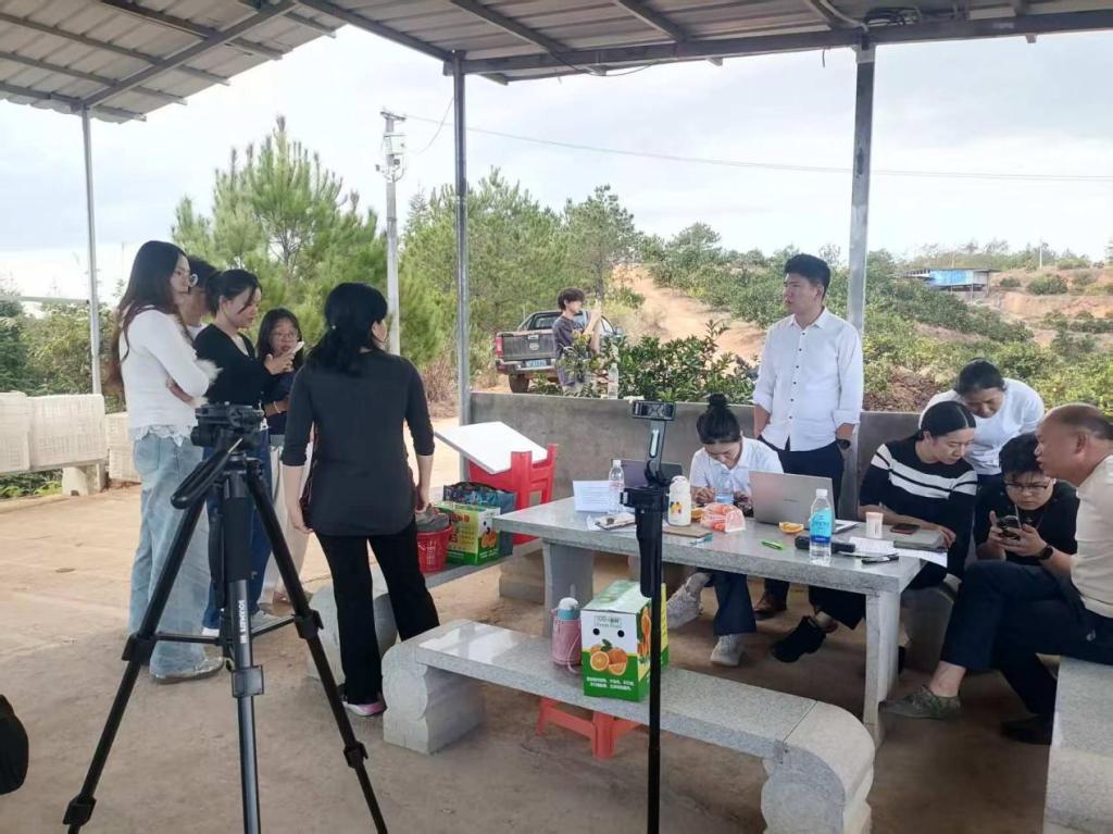 12月15日,智财数联先锋工作室派遣学生前往河源市和平县河溪村贝墩脐橙农场,开展场地勘察、脐橙测评、帮助农户创建账号、全流程策划等前期工作。