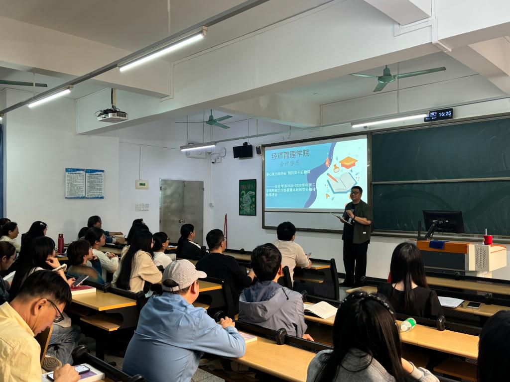 在交流讨论环节,各课程组负责人及教师代表结合工作实际,就如何高效落实各项任务进行了深入探讨,进一步凝聚了共识。会中,部分教师就合格评估资料整理的具体要求进行了咨询,系主任结合评估指标体系逐一解答,并再次强调了材料规范与教学实际相统一的重要性。朱主任在总结发言中号召全体教师,要将评估要求转化为持续改进的内生动力,以规范促提升,以实干求实效,将个人发展融入学院和学校发展大局,以饱满的热情和严谨的作风,共同为学校顺利通过本科教学工作合格评估贡献力量。本次会议目标明确、内容务实,既是一次新学期工作的部署会,也是一次迎评促建的动员会。会计学系全体教师正以崭新的精神面貌和扎实的工作态度,开启新学期的奋进征程,奋力谱写会计学系高质量发展的新篇章。
