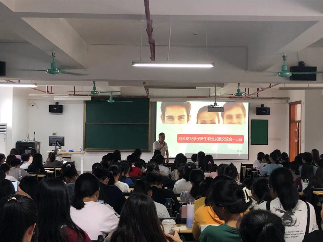 随后,Lisa老师为同学们分享商科岗位等知识。Lisa老师主要从“商圈专业解析&就业方向”“大学时间规划”“财经圈发展”“建议交流”四个方面阐述了我国对于高端管理会计人才的缺口,同时提醒同学们尽早考取不同级别的证书以获得就业竞争力。大一至大三时期,是学习专业知识,考取CMA&CPA&ACCA等高端专业证书的黄金时期,因此,同学们应把握时机,尽早制定学习计划。最后Lisa老师借用了孟晚舟女士的一句话作为此次分享会的结束语:“来日并不方长,选择决定未来!”。