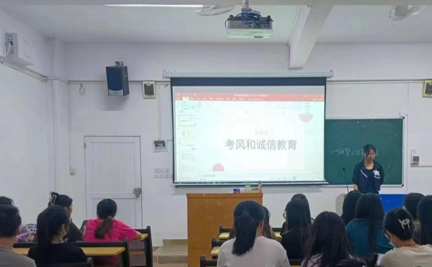 会议伊始,各班团支书兼班长强调了期末考试纪律,并通过PPT讲解期末考试的相关规章制度。同学们在期末考试过程中,要严格遵守考试规章制度,实事求是,杜绝一切考试作弊行为,如使用通讯设备或其他器材作弊等。希望同学们能够发扬诚信考试之风,勇于抵制一切考试作弊行为。