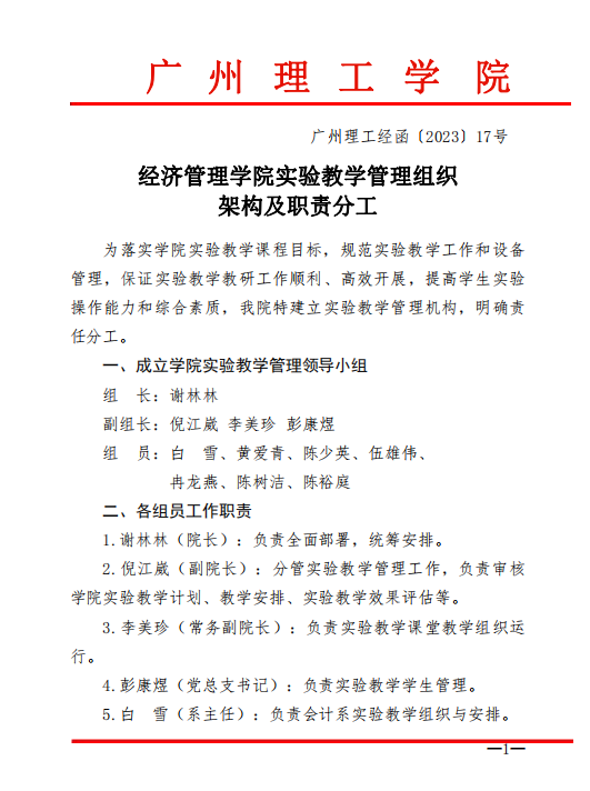 suncitygroup太阳集团实验教学管理组织架构及职责分工