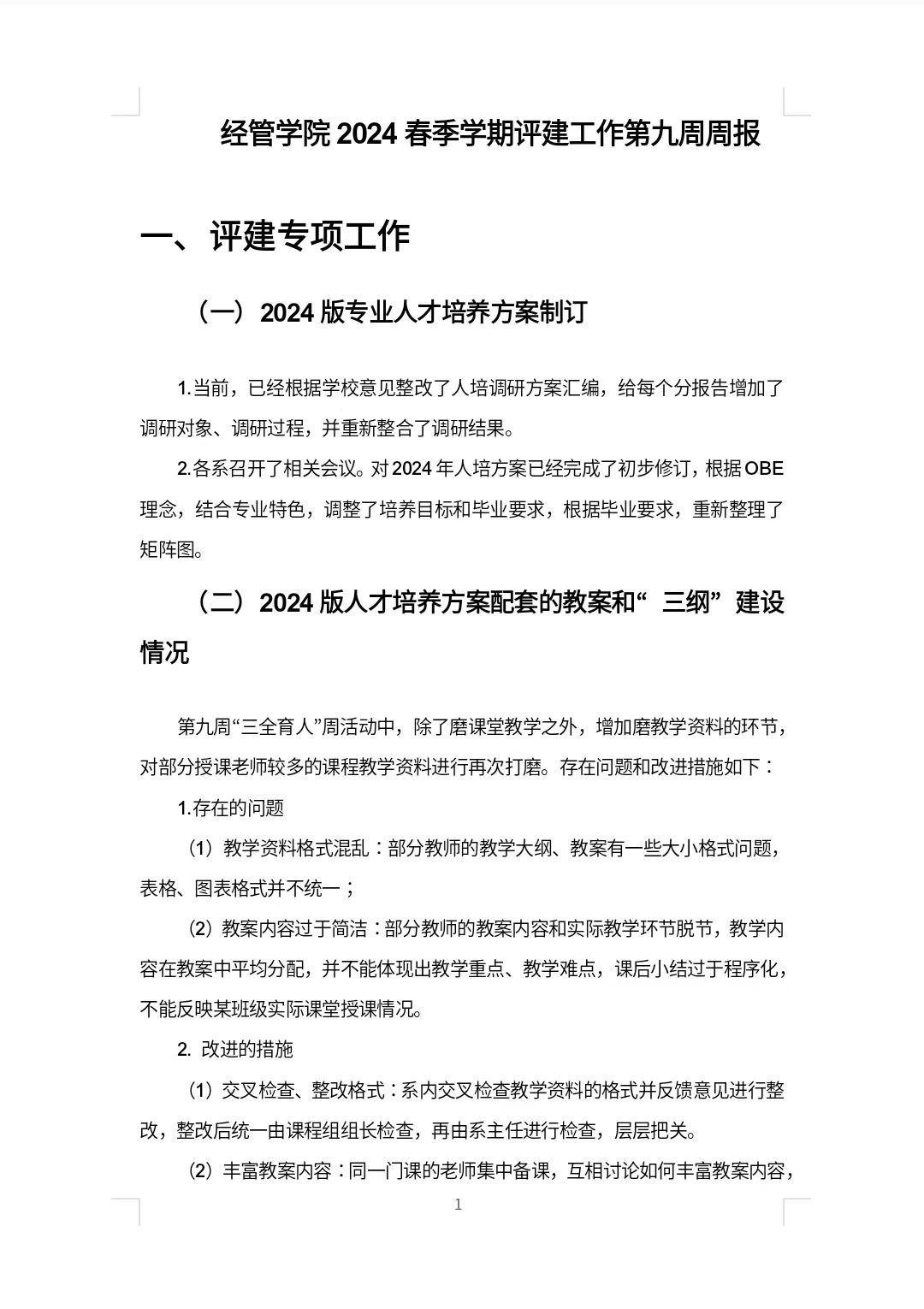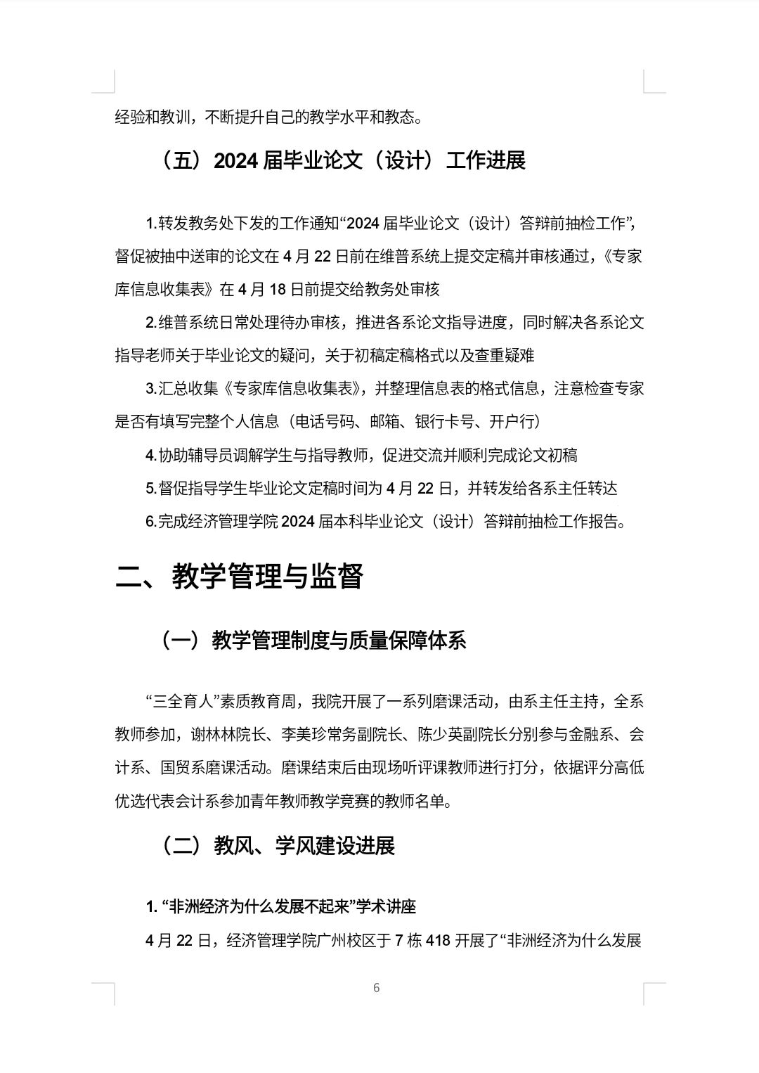 经管学院2024春季学期评建工作第九周周报