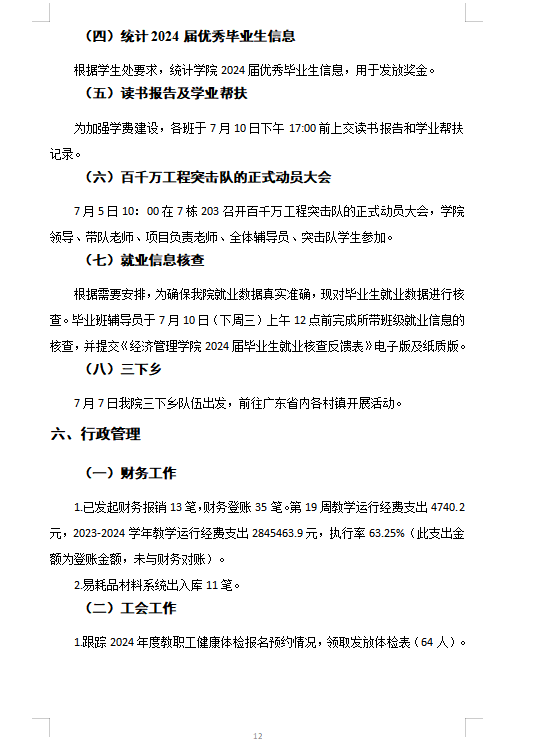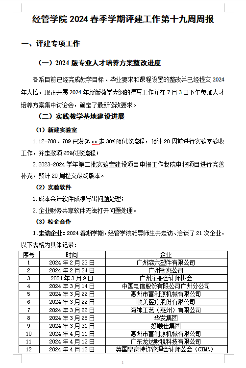 经管学院2024春季学期评建工作第19周周报