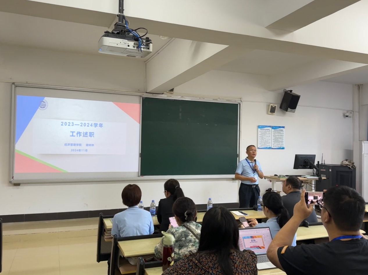 会上,谢院长首先进行了述职报告。他全面总结了学院过去一学年的工作任务完成情况,包括常规工作的稳步推进、主体责任制改革任务以及核心工作(评建工作)的完成情况。同时,谢院长还详细阐述了自己在教学科研等方面的工作情况,并坦诚地指出了工作中存在的不足。针对新学年,他提出了明确的工作目标和切实可行的工作思路。