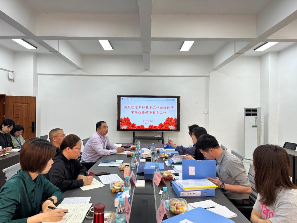 在听取学院的汇报后,评估专家组依最新教学合格评估5.0指南对学院的相关材料进行了细致的检查。专家们重点审查了学院基本概况、师资建设、专业与课程建设、学风建设与服务、质量控制、教学质量六大核心指标体系,并详细查阅了相关支撑材料、教学档案、管理制度等内容。检查过程中,专家组对学院在教学建设方面的努力给予了充分肯定,认为学院在人才培养、教学管理、课程建设等方面已取得阶段性进展,部分工作成效显著。同时,专家们也指出了当前评建工作仍需进一步完善的环节,特别是材料建设的完整性和系统性需要进一步加强,部分支撑材料仍存在一定的缺漏;教师业务档案的建档标准需更加明确,确保内容详实;访谈培训工作仍需深化,进一步提升师生对评估核心内容的理解和掌握,以更好地应对下一步评估工作。