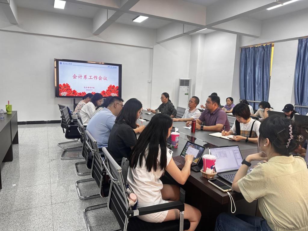 会议伊始,由会计系主任白雪与助理朱文翰分别汇报会计系本学期工作成效,介绍本学期末暑假及下学期工作安排与重点工作规划。学院领导先后发言。谢林林院长指出,会计系是学院学生规模最大的系,在充分肯定会计系工作成绩同时,也指出,应与广州其他高校高水平的会计学科专业比较,寻找差距;学院和系要着力从优化师资结构、加强凝聚力、提高全局意识、强化学科专业建设等方面推进会计系高质量发展。