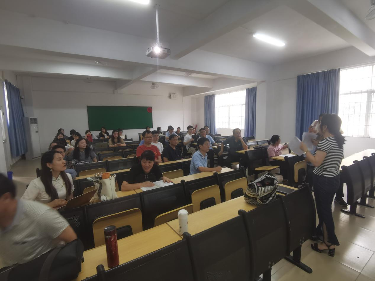 本次会议有三个主题,第一是迎接即将到来的期初教学资料检查。黄爱青主任将两个系所有课程进行了分类归属,确定了每门课程的课程负责人以及所有课程的课程组负责人。吴霜主任强调,课程组组长在统筹教学大纲与课程进度表的制作中扮演着关键角色,全体成员应该在课程组组长的带领下共同商议教学大纲与课程进度表的内容制定。在这一过程中组长需确认教学内容与教学目标相符,同时注重创新和实用性。商议完成后,由课程组组长统一将教学大纲与教学进度表进行修订。