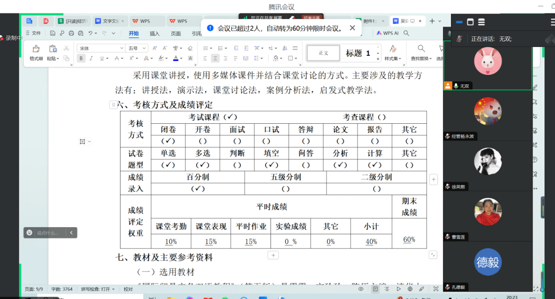 本次会议的核心议题讨论结束后,各位负责人还就教学资料检查的细节要求和期末考试的模式选择进行了深入的研讨,交换了许多宝贵的意见和建议。