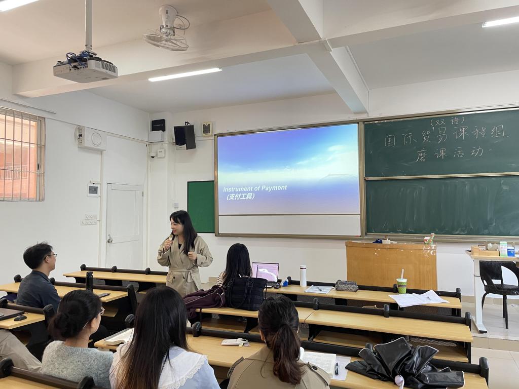 本次会议主要针对《跨国企业经营与管理》《国际贸易实务(双语)》及《国际经济学》三门课程的教学课堂进行了观摩和评价。胡玲、吴霜和孔德毅老师分别进行了课程试讲。