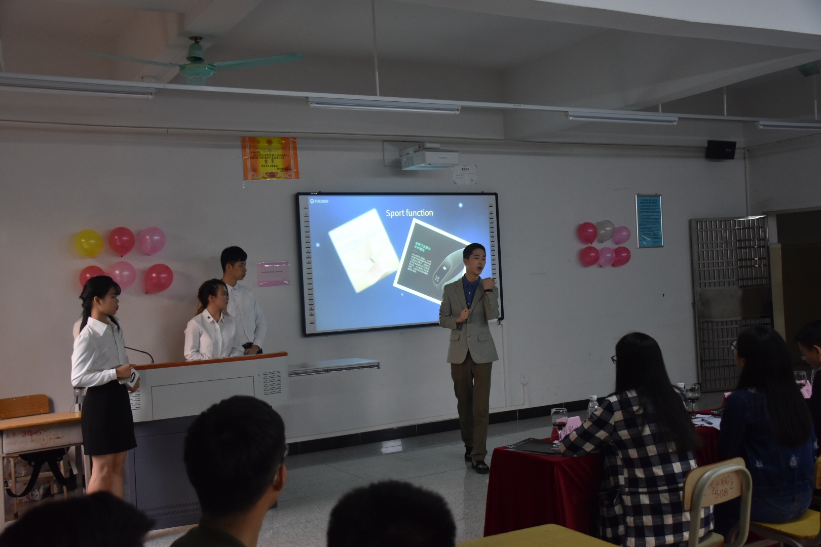 比赛正式开始前,主持人对比赛的评分规则给予详细的介绍,比赛全程使用英文进行表达,用实物和PPT展示,比赛为团体赛形式,每个团队由第一轮知识赛合格的5-6名选手组成,本次比赛共有6支参赛队伍,30多名选手参与,比赛分为模拟产品发布会和提问环节。比赛过程中,各参赛队伍以流利的英语解说、精彩纷呈的舞蹈、话剧等表演形式诠释着他们手中各种精心挑选的产品,比赛紧张激烈,精彩不断,选手们别出心裁的创意,制作精美的演示文件以及各种精彩的表演等,给在场的每一个人都留下了深刻的印象,将比赛推向高潮。经过紧张精彩比拼后,由经济学151班的郭嘉俊、秦颖麟,经济学152班的郭锦辉以及国贸151的崔钊泉、何芷欣和财管151班的龙绮霞六位同学组成的“The Rainmaker”队以百萃红(patriale)红酒作为展示产品夺得了本次比赛冠军。