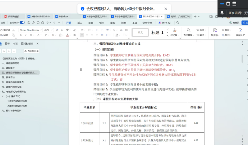 为保障期末考试公平公正,提升试卷命题质量,全方位检验学生对知识的掌握程度,确保题型设置全面覆盖教学重点、难点,2025年11月13日晚,suncitygroup太阳集团国贸双语课程组以线上形式召开期末制卷质量专题研讨会。会议由课程组组长徐英熙主持,吴霜、董化春、李嘉俊、吴骏等教师参会,围绕试卷命题规范、题型设计、考核方式等问题展开深入讨论。